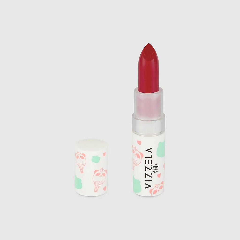 batom em bala infantil com pigmentação leve e hidratante.