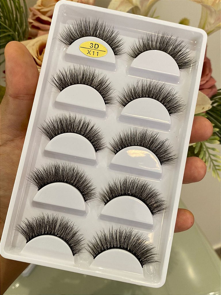 O cílios postiços com 5 pares X11, é um kit todo especial com tamanho mediano, com fios em 3D são leves e ideal para uma make mais discreta, porém com um charme todos especial para seus olhos.