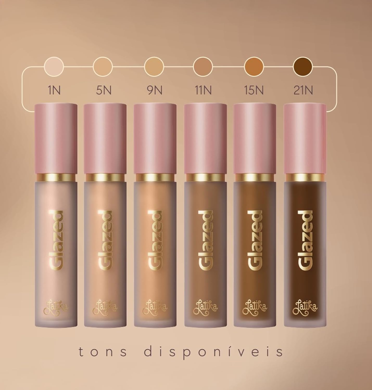 O Corretivo Glazed Concealer 5N da Latika é um produto líquido de alta cobertura que combina camuflagem intensa com um acabamento sofisticado e luminoso.