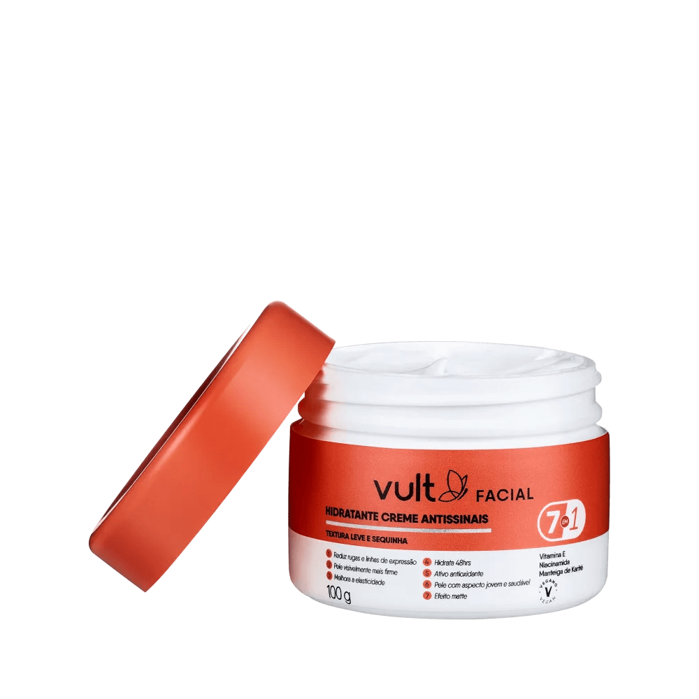 O Creme Facial Hidratante Antissinais Facial 7 em 1 da Vult possui textura leve que garante um resultado confortável, tudo isso aliado a um toque seco, que deixa um acabamento mate no rosto.