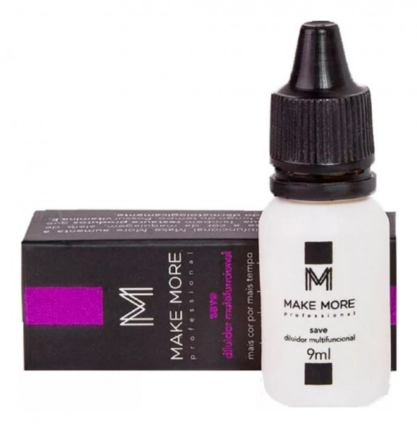 Diluidor Multifuncional Make More aumenta a fixação da maquiagem, além de deixa-la a prova d'água. Também restaura produtos que ficam ressecados ao longo do tempo como delineador em gel, sombras cremosas, máscara de cílios entre outros.