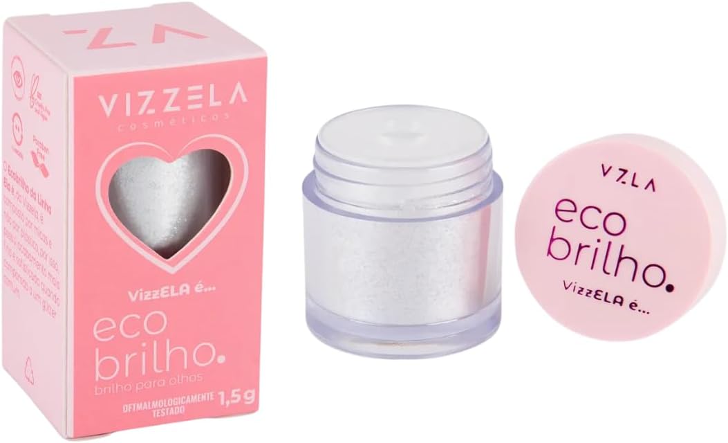 Ecobrilho da Linha Ela é, da Vizzela, é composto por micas e não por plástico, por isso, possui acabamento mais fino e sofisticado quando comparado a um glitter comum.