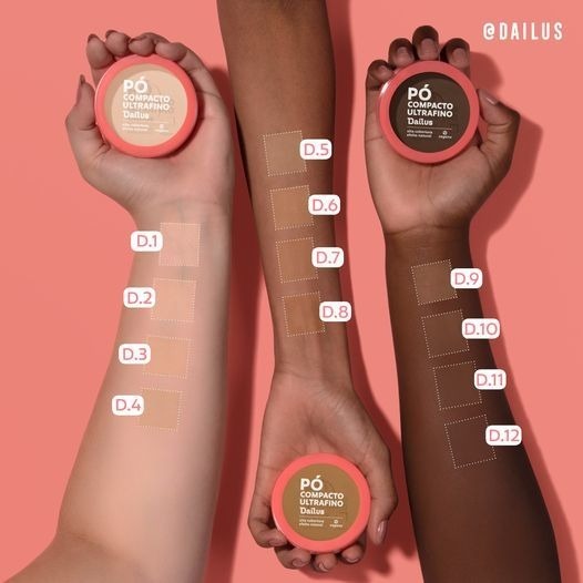 O pó compacto vegano Dailus foi especialmente criado pela marca com uma gama enorme de tons, que servem para todos os tipos de pele.