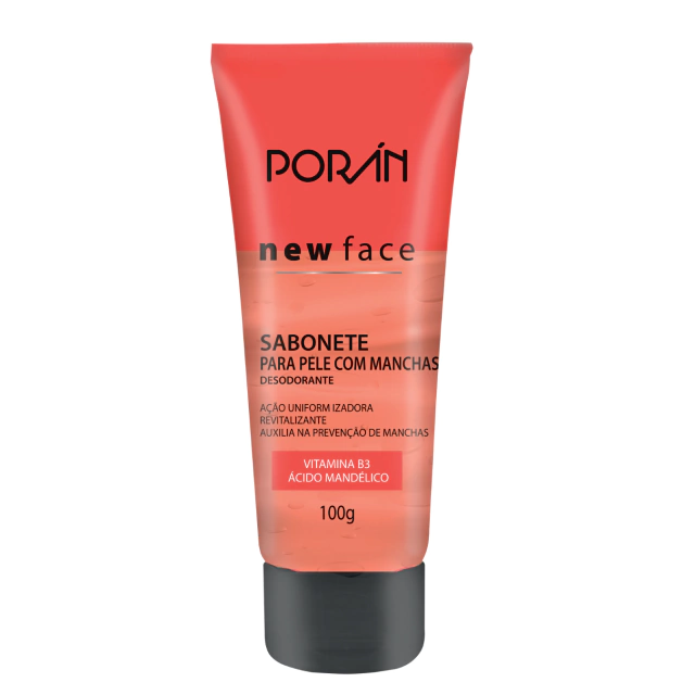 O SABONETE PARA PELE COM MANCHAS NEW FACE PORAN HIGIENIZA A PELE ENQUANTO PROPORCIONA UM TOQUE MACIO E AVELUDADO, AUXILIANDO NA PREVENÇÃO DE MANCHAS, PROPORCIONANDO PERFUME AGRADÁVEL. POSSUI NIACINAMIDA, ATIVO DESODORANTE, E ÁCIDO MANDÉLICO.
